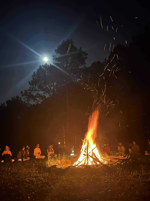 Mình nhớ như in những lúc thiền bình minh hay thiền trăng, dù bên ngoài gió rét nhưng khi ấy, tâm trí mình tĩnh tại vô cùng, khi hoà theo bài kirtan chung và lặng ngắm mặt trời dần ló lên, khoảng không mênh mông bên trên với ánh trăng vàng lịm hay các vị thần đang nhảy múa cùng ánh lửa trại bập bùng. Mình không khỏi xúc động khi được gợi nhắc về sự khôn cùng của vũ trụ bên ngoài mình, bên trong mình, một vũ trụ. Những khoảnh khắc tâm linh ấy xin được giữ cho riêng mình.